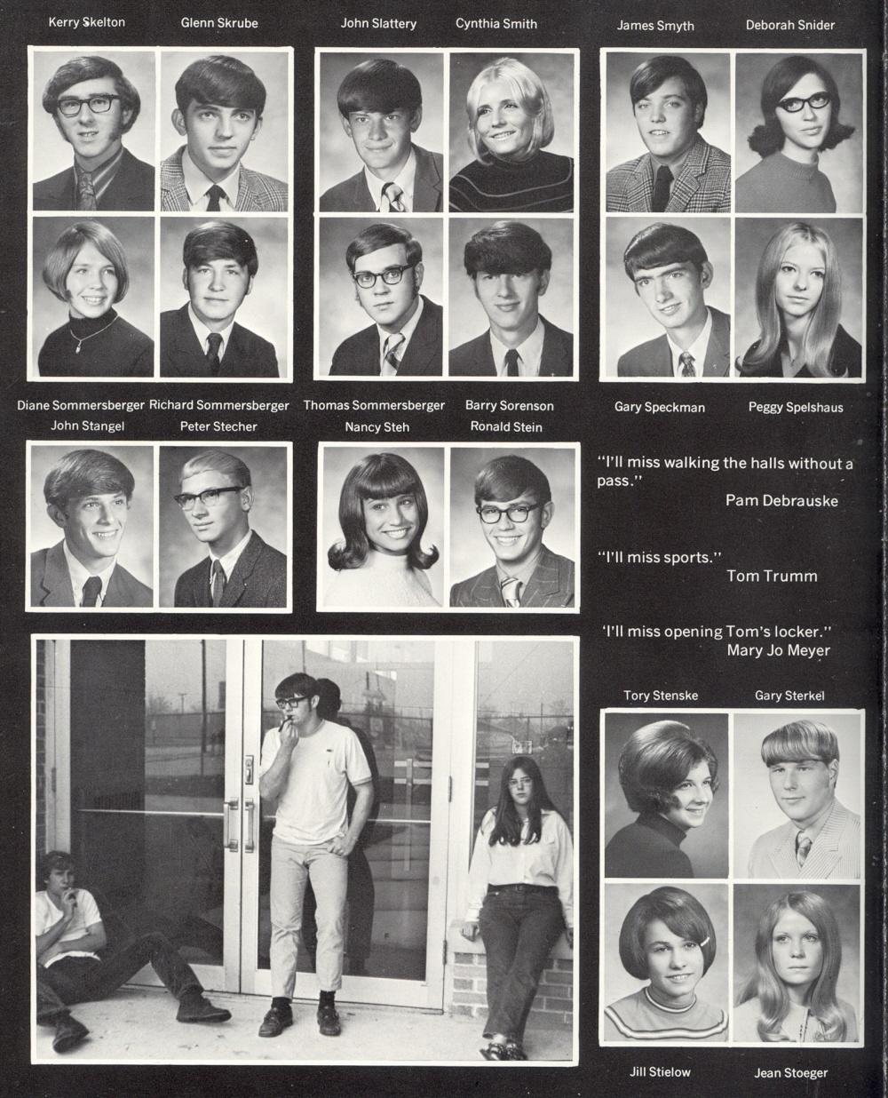High School, Page 28: Kerry Skelton, Glenn Skrube, John Slattery Cynthia Smith, James Smyth, Deborah Snider, Diane Sommersberger, Richard Sommersberger, Thomas Sommersberger, Barry Sorenson, Gary Speckman, Peggy Spelshaus, John Stangel, Peter Stecher, Nancy Steh, Ronald Stein, Tory Stenske, Gary Sterkel, Jill Stielow, Jean Stoeger.