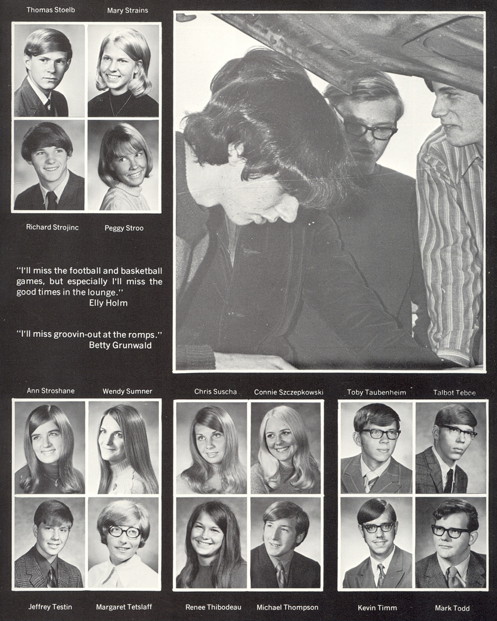 High School, Page 29: Thomas Stoelb, Mary Strains, Richard Strojinc, Peggy Stroo, Ann Stroshane, Wendy Sumner, Chris Suscha, Connie Szczepkowski, Toby Taubenheim, Talbot Teboe, Jeffrey Testin, Margaret Tetzlaff, Renee Thibodeau, Michael Thompson, Kevin Timm, Mark Todd.