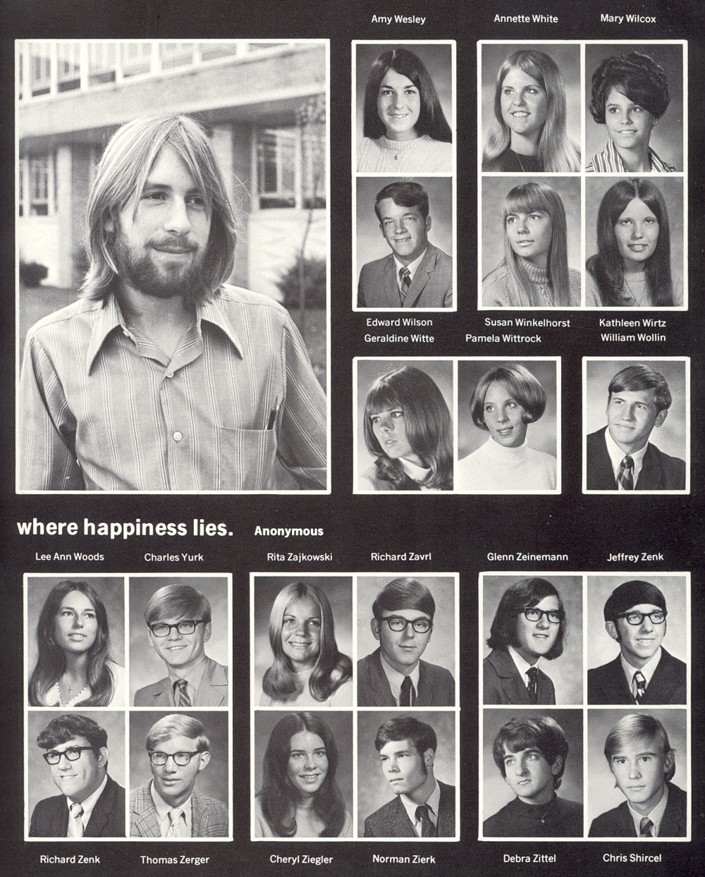 High School, Page 31: Amy Wesley, Annette White, Mary Wilcox, Edward Wilson, Susan Winkelhorst, Kathleen Wirtz, Geraldine Witte, Pamela Wittrock, William Wollin, Lee Ann Woods, Charles Yurk, Rita Zajkowski, Richard Zavrl, Glenn Zeinemann, Jeffrey Zenk, Richard Zenk, Thomas Zerger, Cheryl Ziegler, Norman Zierk, Debra Zittel, Chris Shircel.