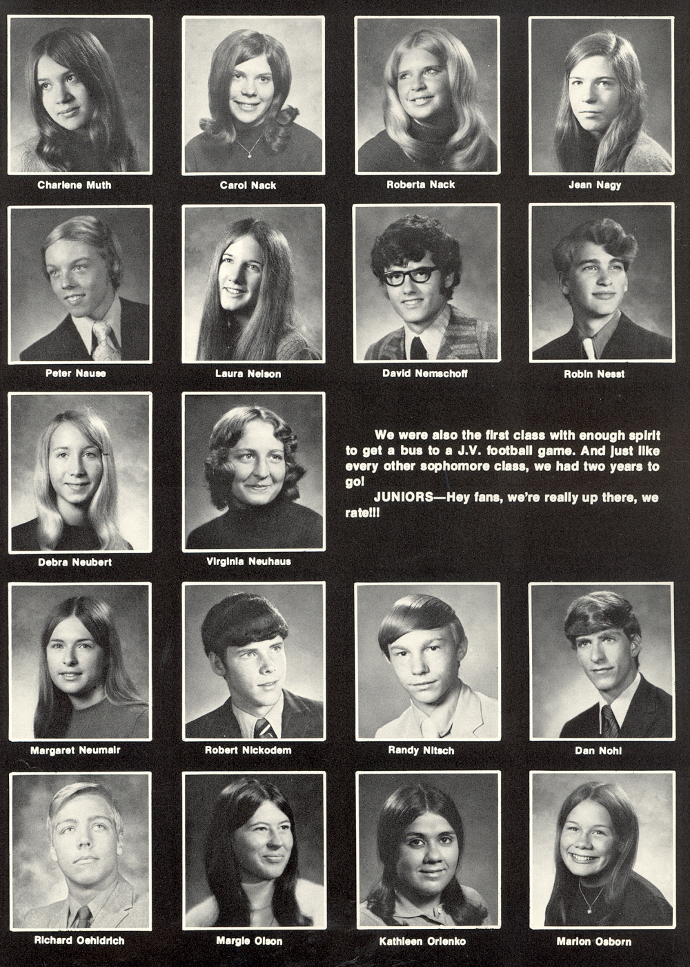 1972 Sheboygan North High School, Page 137: Charlene Muth, Carol Nack, Roberta Nack, Jean Nagy, Peter Nause, Laura Nelson, David Nemschoff, Robin Nesst, Debra Neubert, Virginia Neuhaus, Margaret Neumair, Robert Nickodem, Randy Nitsch, Dan Nohl, Richard Oehldrich, Margie Olson, Kathleen Orlenko, Marion Osborn.