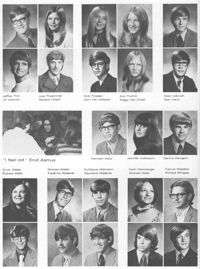 1972 Sheboygan South High School, Page 28: Jeffrey Thill, Lois Thuemmier, Vicki Trossen, Ann Trumm, Dean Udovich, Jill Udovich, Richard Uttech, John Van Akkeren, Peggy Van Driest, Glen Vanic, Kenneth Velier, Jennifer Vollbrecht, Dennis Wangerin, Cindy Weber, Michael Weber, DuWayne Weimann, Kathi Weinberger, Francis Weisfeld, Richard Wells, Frederick Wesener, Raymond Wesener, Michael West, Richard Whipple