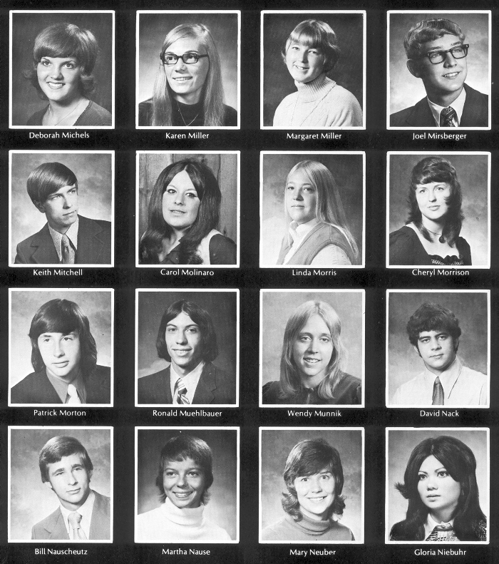 1973 Sheboygan North High School, Page 113: Deborah Michels, Karen Miller, Margaret Miller, Joel Mirsberger, Keith Mitchell, Carol Molinaro, Linda Morris, Cheryl Morrison, Patrick Morton, Ronald Muehlbauer, Wendy Munnik, David Nack, Bill Nauscheutz, Martha Nause, Mary Neuber, Gloria Niebuhr.