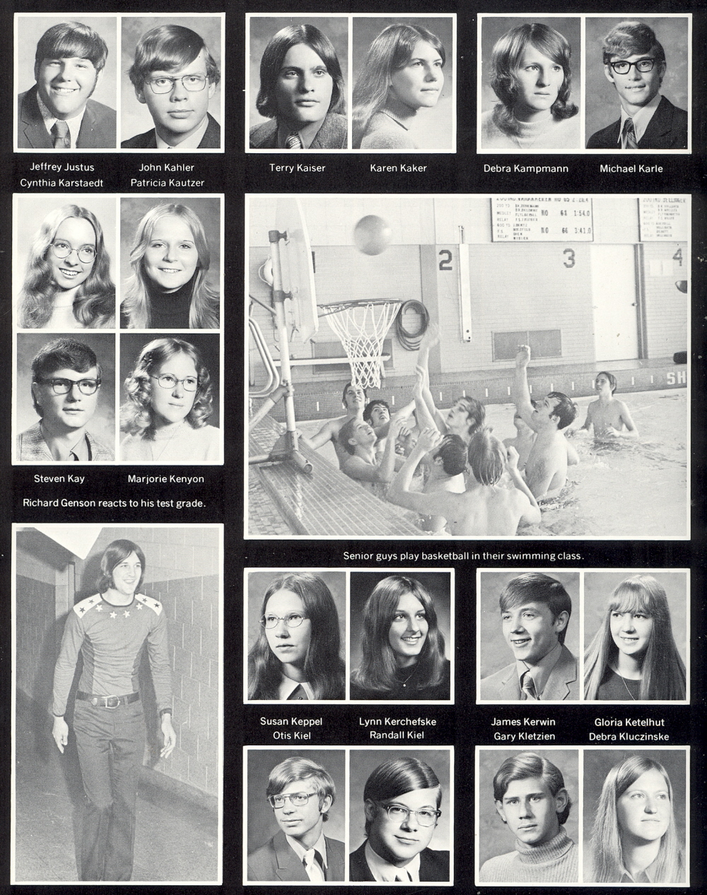 High School, Page 42: Jeffrey Justus, John Kahler, Terry Kaiser, Karen Kaker, Debra Kampmann, Michael Karle, Cynthia Karstaedt, Patricia Kautzer, Steven Kay, Marjorie Kenyon, Susan Keppel, Lynne Kerchefske, James Kerwin, Gloria Ketelhut, Otis Kiel, Randall Kiel, Gary Kletzien, Debra Kluczinske.