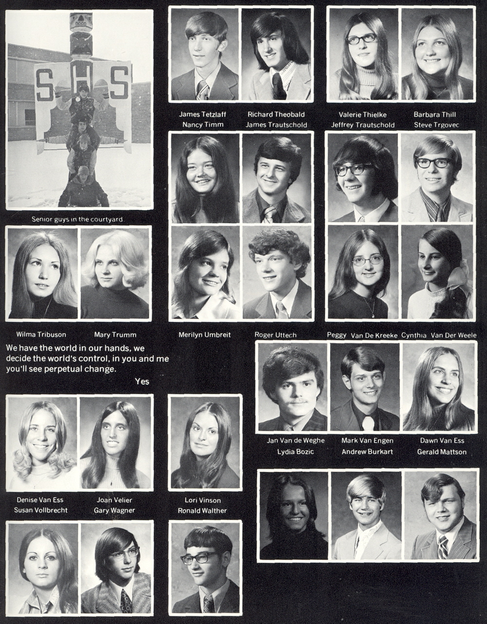 High School, Page 53: James Tetzlaff, Richard Theobald, Valerie Thielke, Barbara Thill, Nancy Timm, James Trautschold, Jeffrey Trautschold, Steve Trgovec, Wilma Tribuson, Mary Trumm, Merilyn Umbreit, Roger Uttech, Peggy Van De Kreeke, Cynthia Van Der Weele, Jan Van de Weghe, Mark Van Engen, Dawn Van Ess, Denise Van Ess, Joan Velier, Lori Vinson, Susan Vollbrecht, Gary Wagner, Ronald Walther, Lydia Bozic, Andrew Burkart, Gerald Mattson.