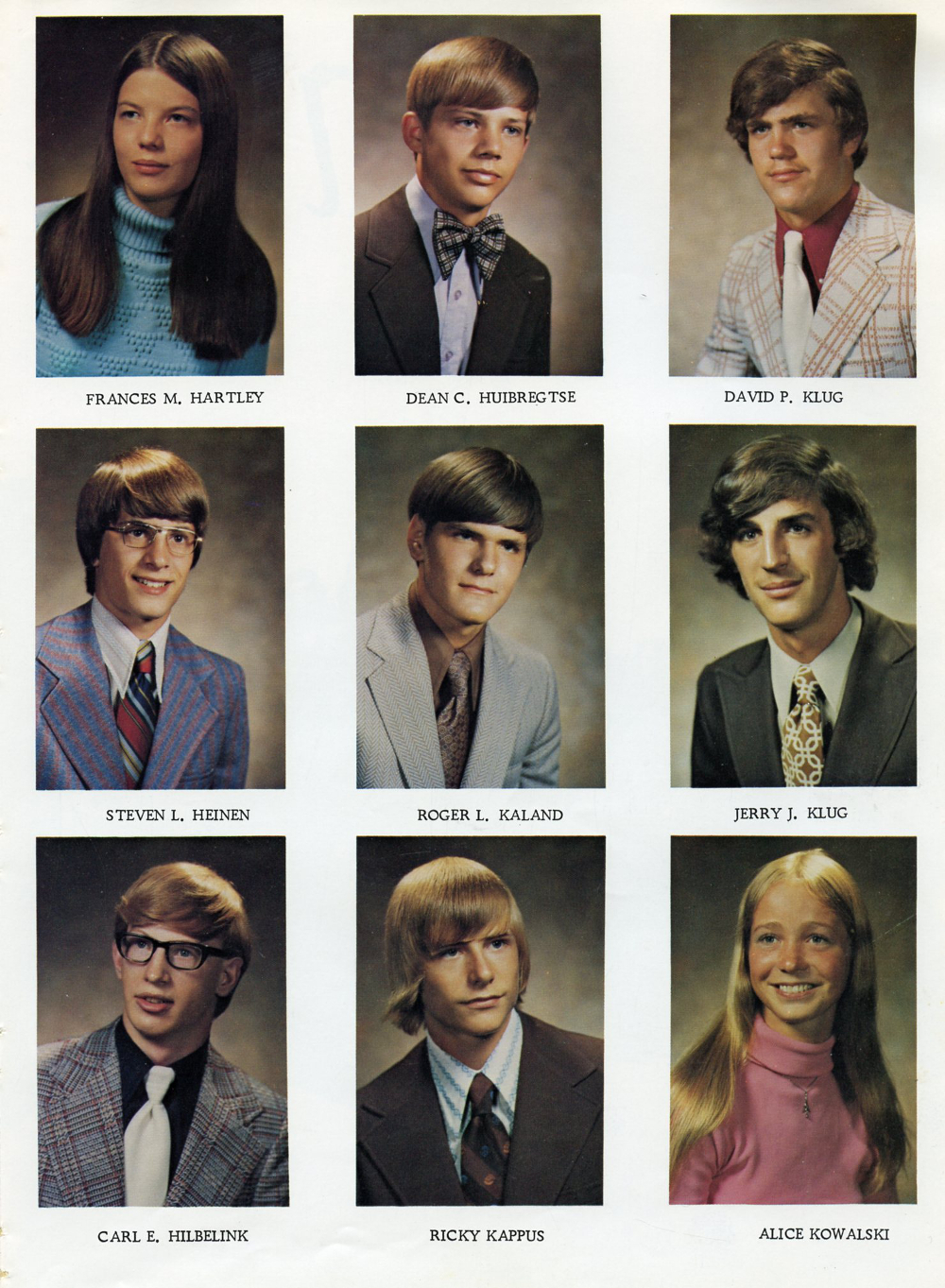 1974 Cedar Grove High School, Page 23: Frances M. Hartley, Steven L. Heinen, Carl E. Hilbelink, Dean C. Huibregtse, Roger L. Kaland, Ricky Kappus, David P. Klug, Jerry J. Klug, Alice Kowalski.