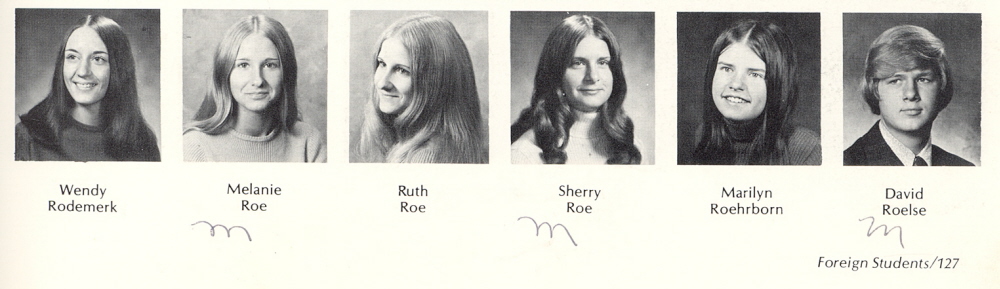 1974 Sheboygan South High School, Page 127: Wendy Rodemerk, Melanie Roe, Ruth Roe, Sherry Roe, Marilyn Roehrborn, David Roelse.