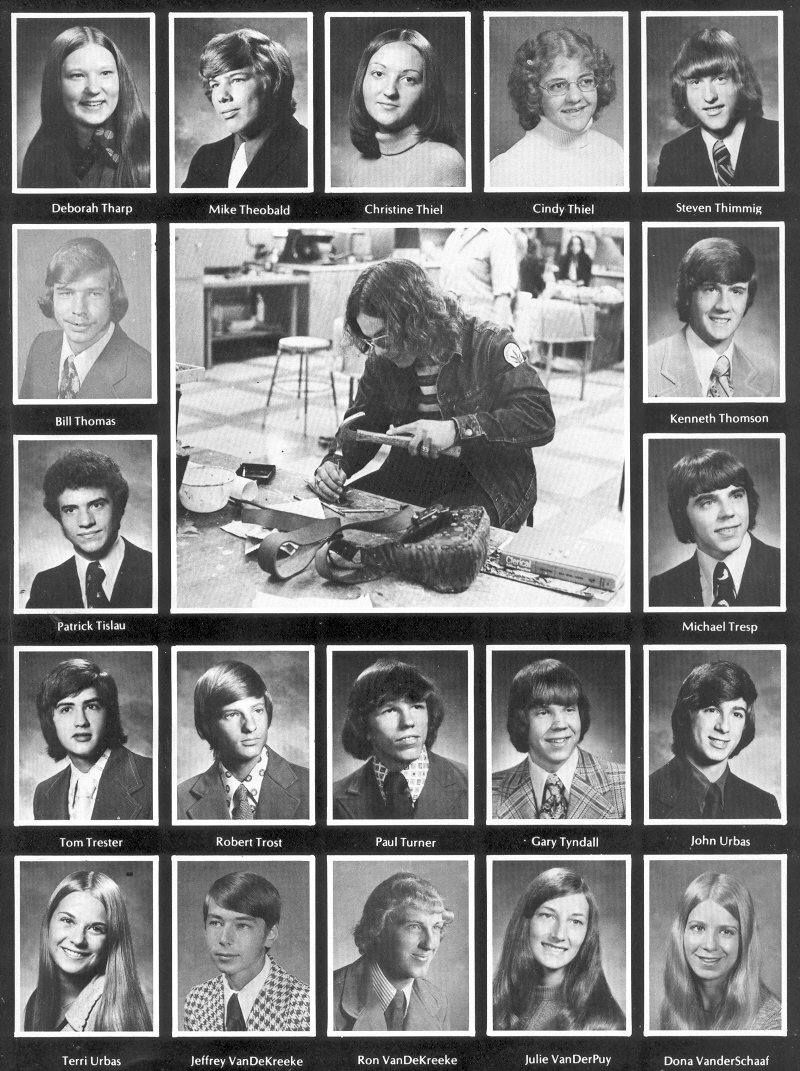 1975 Sheboygan North High School, Page 143: Deborah Tharp, Mike Theobald, Christine Thiel, Cindy Thiel, Steven Thimmig, Bill Thomas, Kenneth Thomson, Patrick Tislau, Michael Tresp, Tom Trester, Robert Trost, Paul Turner, Gary Tyndall, John Urbas, Terri Urbas, Jeffrey VanDeKreeke, Ron VanDeKreeke, Julie VanDerPuy, Dona VanderSchaaf.