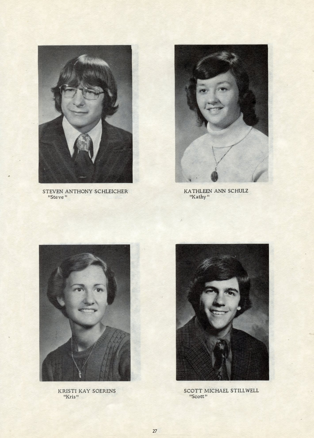 1976 Kohler High School, Page 27: Steven Anthony Schleicher, Kathleen Ann Schulz, Kristi Kay Soerens, Scott Michael Stillwell.