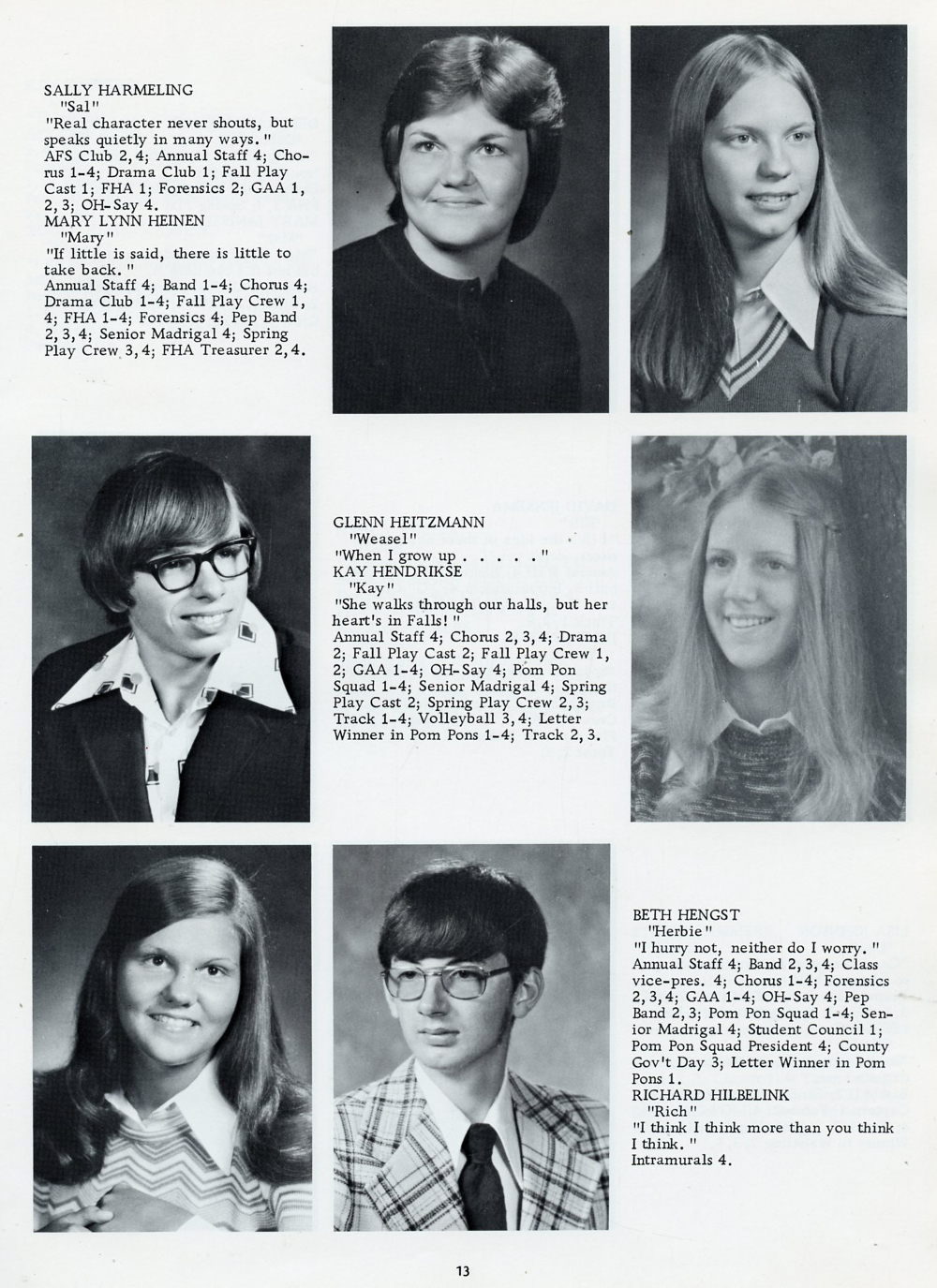 1976 Oostburg High School, Page 13: Sally Harmeling, Mary Lynn Heinen, Glenn Heitzmann, Kay Hendrikse, Beth Hengst, Richard Hilbelink.