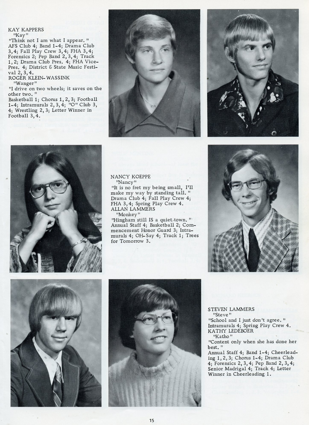 1976 Oostburg High School, Page 15: Kay Kappers, Roger Klein-Wassink, Nancy Koeppe, Allan Lammers, Steven Lammers, Kathy Ledeboer.
