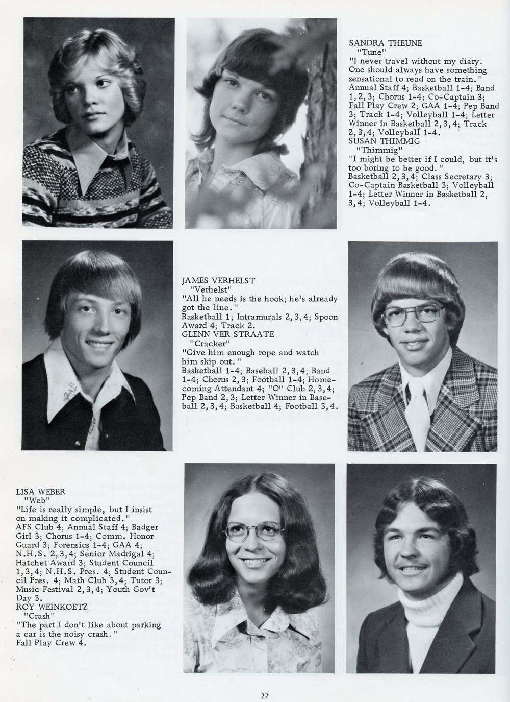1976 Oostburg High School, Page 22: Sandra Theune, Susan Thimmig, James Verhelst, Glenn Ver Straate, Lisa Weber, Roy Weinkoetz.