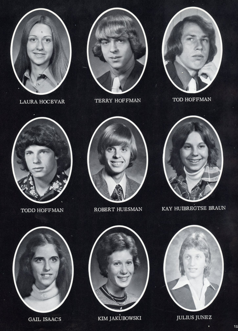 1976 Sheboygan Falls High School, Page 133: Laura Hocevar, Terry Hoffman, Tod Hoffman, Todd Hoffman, Robert Huesman, Kay Huibregtse Braun, Gail Isaacs, Kim Jakubowski, Julius Junez.
