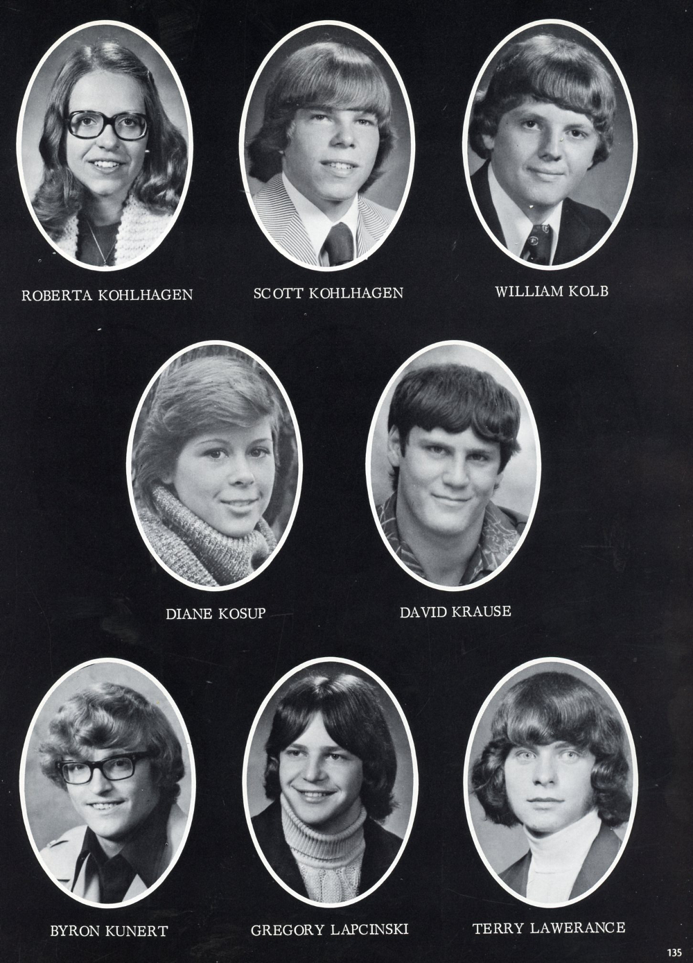 1976 Sheboygan Falls High School, Page 135: Roberta Kohlhagen, Scott Kohlhagen, William Kolb, Diane Kosup, David Krause, Byron Kunert, Gergory Lapcinski, Terry Lawerance.