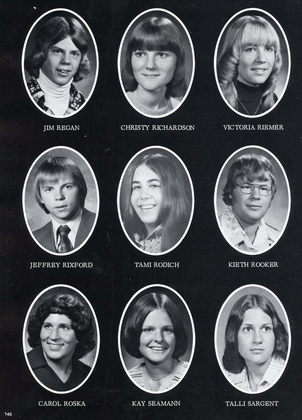1976 Sheboygan Falls High School, Page 140: Jim Regan, Christy Rochardson, Victoria Riemer, Jeffrey Rixford, Tami Rodich, Kieth Rooker, Carol Roska, Kay Seamann, Talli Sargent.