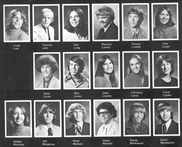 1976 Sheboygan South High School, Page 37: Linda Lohr, Thomas Lohr, Gail Long, Richard Lorenz, Randal Lorfeld, Jody Lorger, Dave Lorier, Ron Lorier, Jane Lozano, Christine Lukas, Carol Lutzke, Debbie Manthey, Jeff Margenau, Peter Markelz, Steve Markelz, Randy Markwardt, David Markworth.