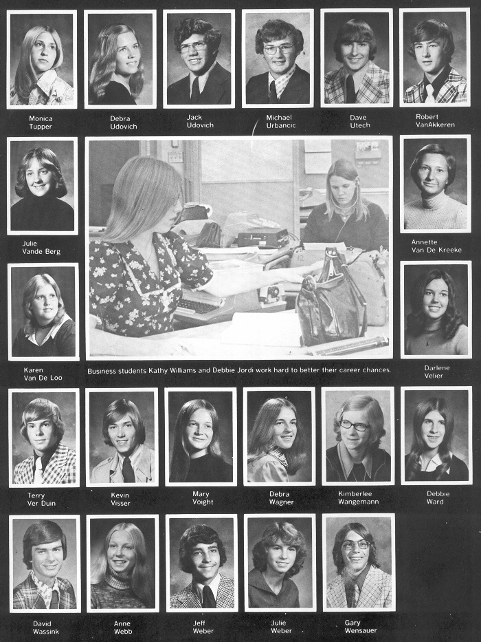 1976 Sheboygan South High School, Page 45: Monica Tupper, Debra Udovich, Jack Udovich, Michael Urbancic, Dave Utech, Robert VanAkkeren, Julie Vande Berg, Annette Van De Kreeke, Karen Van De Loo, Darlene Velier, Terry Ver Duin, Kevin Visser, Mary Voight, Debra Wagner, Kimberlee Wangemann, Debbie Ward, David Wassink, Anne Webb, Jeff Weber, Julie Weber, Gary Wensauer.