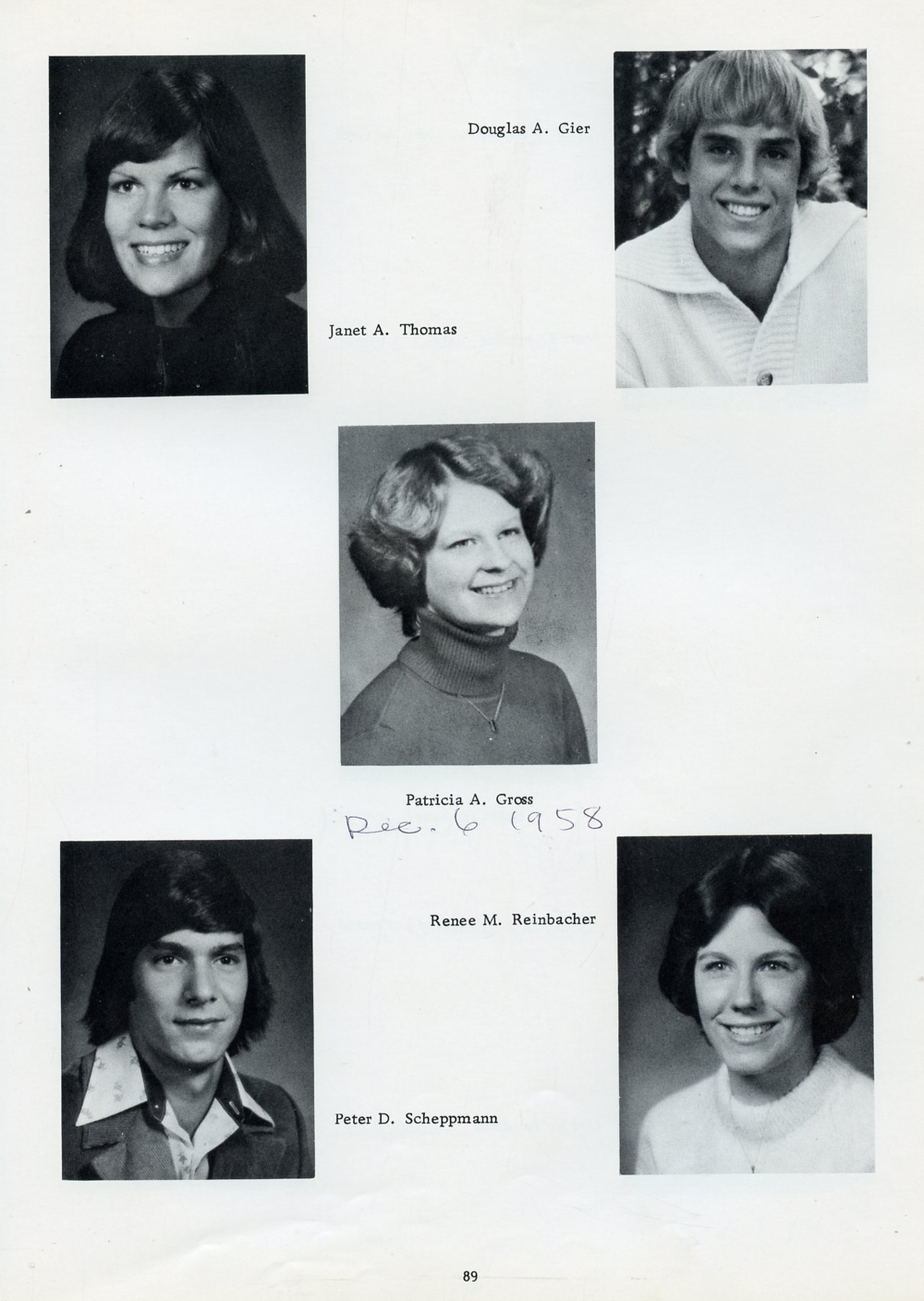 1977 Kohler High School, Page 89: Janet A. Thomas, Douglas A. Gier, Patricia A. Gross, Peter D. Scheppmann, Renee M. Reinbacher.