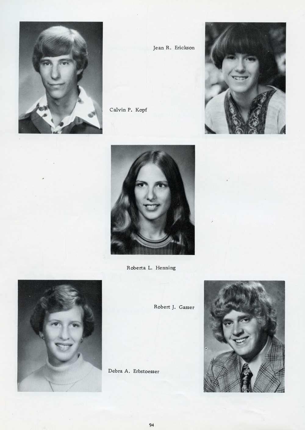 1977 Kohler High School, Page 94: Calvin P. Kopf, Jean R. Erickson, Roberta L. Henning, Debra A. Erbstoesser, Robert J. Gasser.