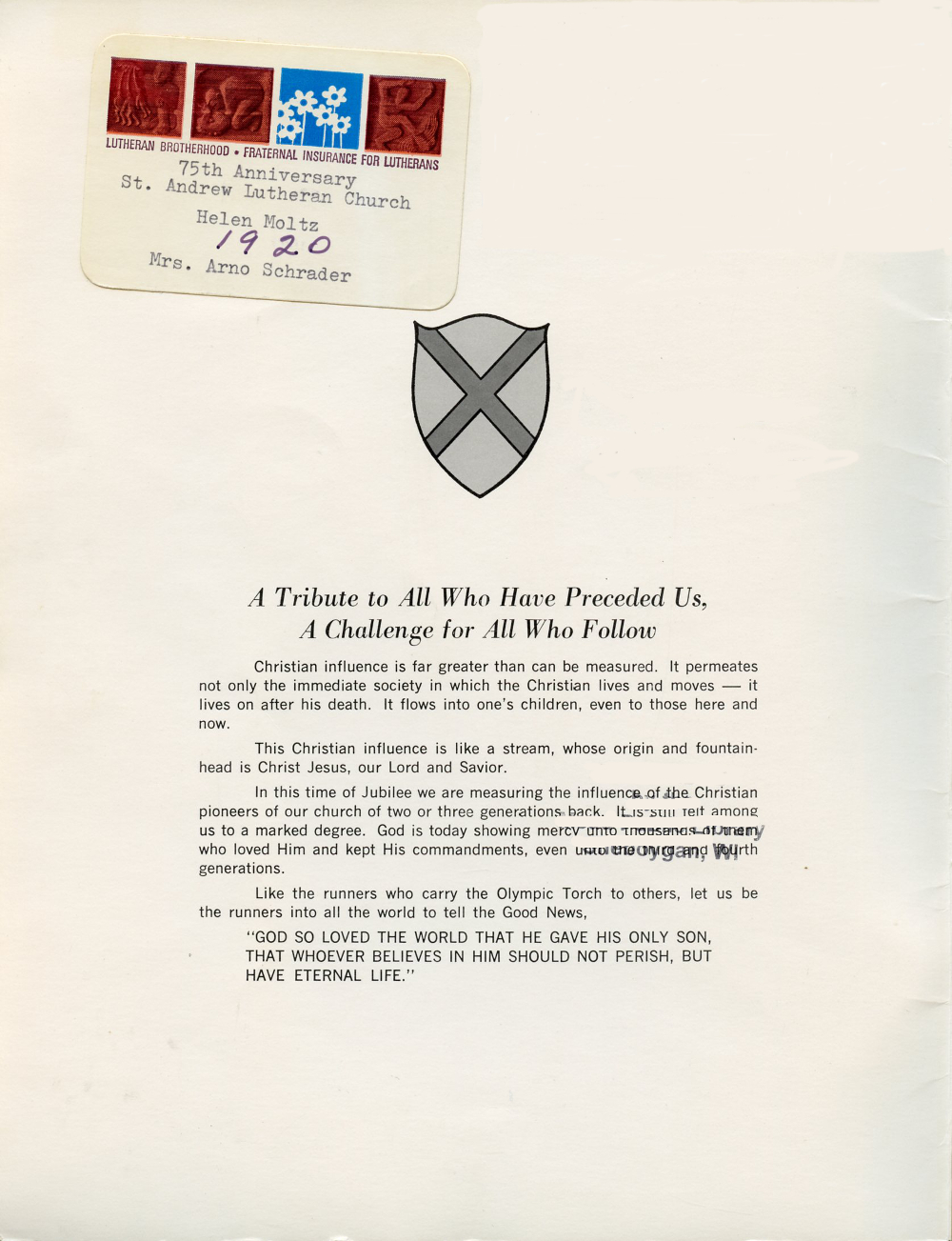 1977 St. Andrews Lutheran Church 75th Anniversary Yearbook Inside Front Cover.