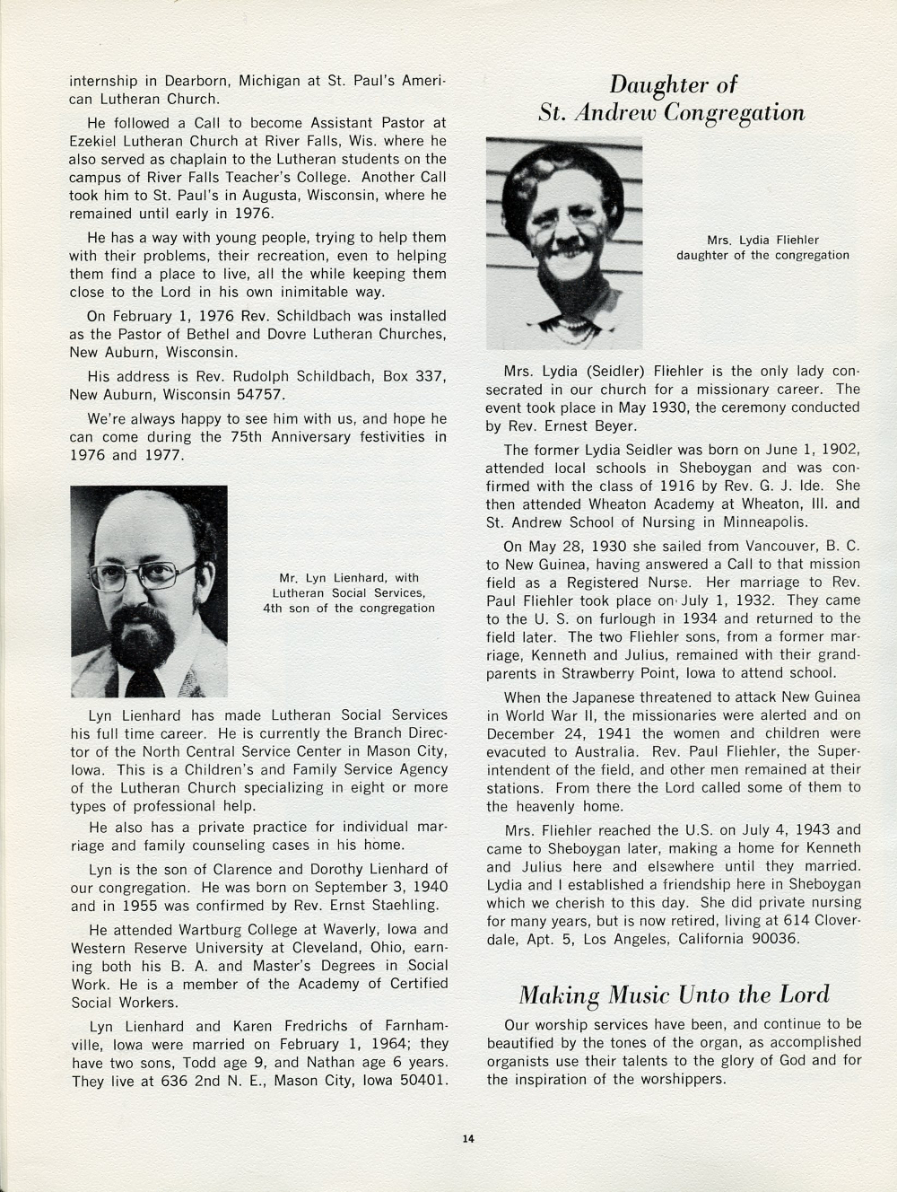 1977 St. Andrews Lutheran Church 75th Anniversary Page 14: Daughter of St. Andrew Congregation, Making Music Unto the Lord.