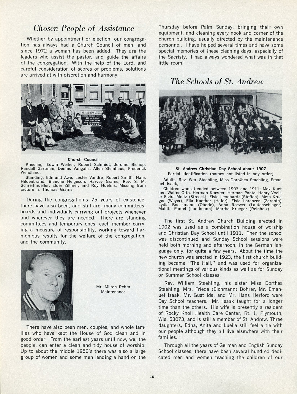 1977 St. Andrews Lutheran Church 75th Anniversary Page 16: Chosen People of Assistance, The Schools of St. Andrew.