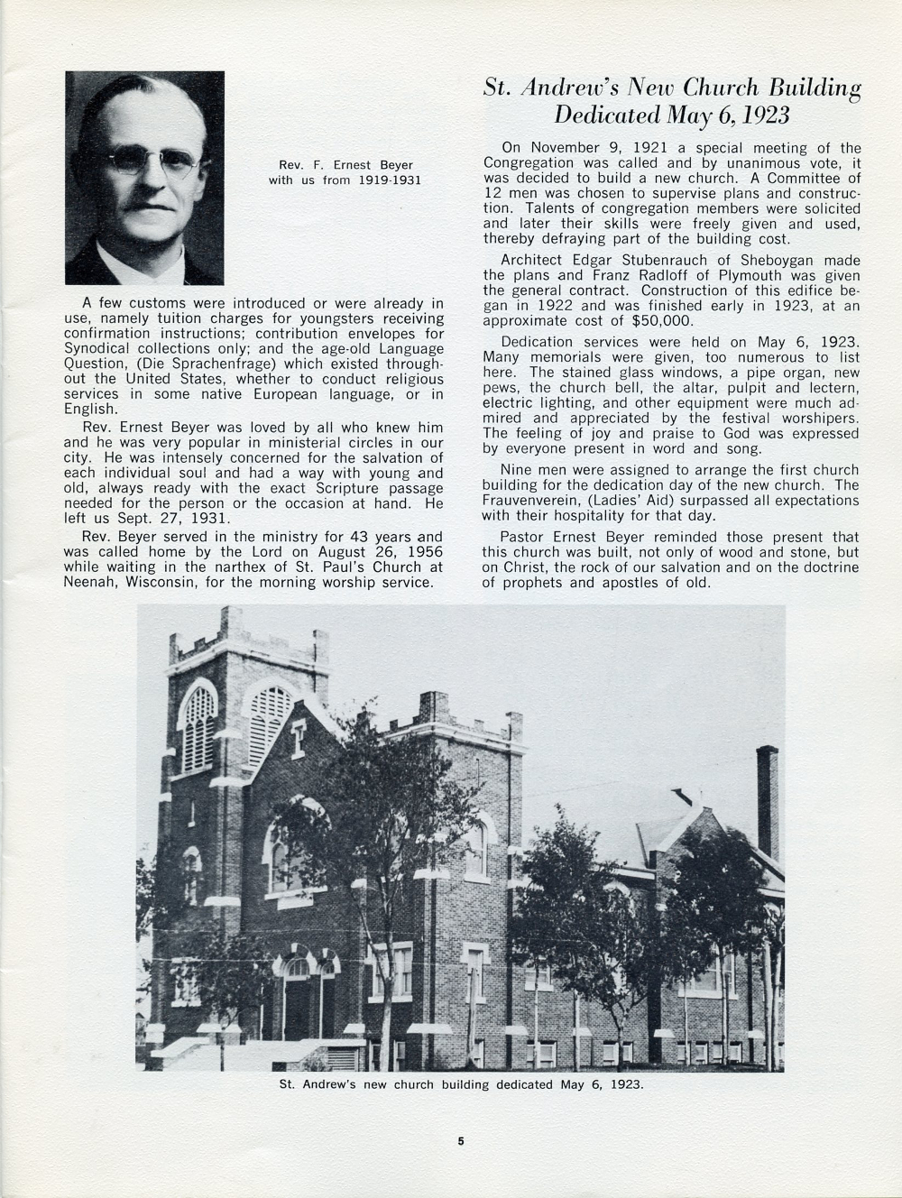 1977 St. Andrews Lutheran Church 75th Anniversary Page 5: St. Andrew's New Church Building Dedicated May 6, 1923.