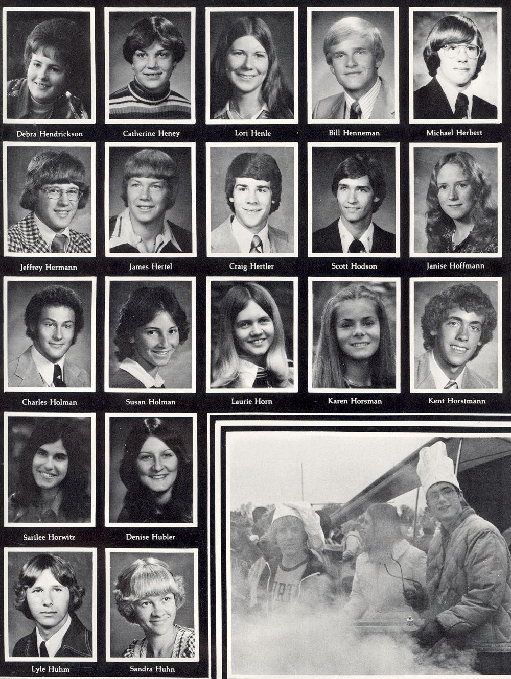 1977 Sheboygan North High School, Page 147: Debra Hendrickson, Catherine Heney, Lori Henle, Bill Henneman, Michael Herbert, Jeffrey Hermann, James Hertel, Craig Hertler, Scott Hodson, Janise Hoffmann, Charles Holman, Susan Holman, Laurie Horn, Karen Horsman, Kent Horstmann, Sarilee Horwitz, Denise Hubler, Lyle Huhm, Sandra Huhn.