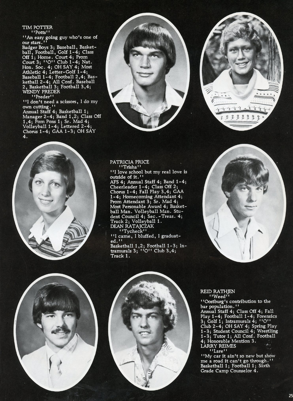 1978 Oostburg High School Page 25: Tim Potter, Wendy Preder, Patricia Price, Dean Ratajczak, Reid Rathjen, Larry Reimes.