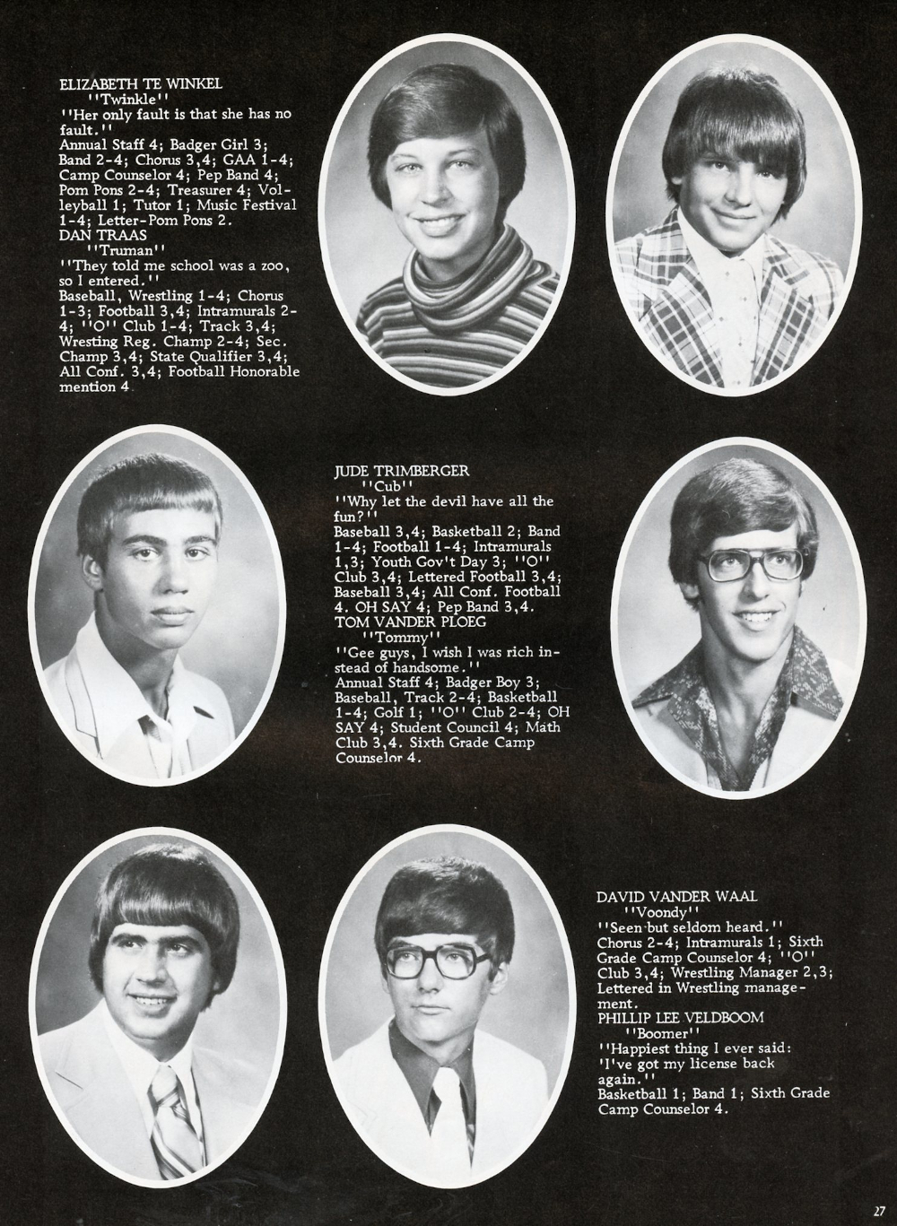 1978 Oostburg High School Page 27: Elizabeth De Winkel, Dan Traas, Jude Trimberger, Tom Vander Ploeg, David Vander Waal, Phillip Lee Veldboom.