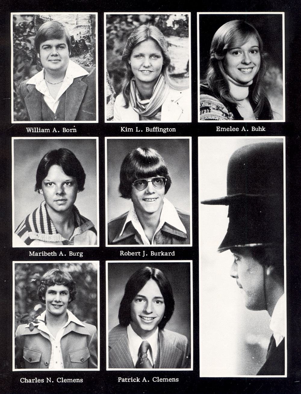1978 Sheboygan Falls High School, Page 118: William A. Born, Kim L. Buffington, Emelee A. Buhk, Maribeth A. Burg, Robert J. Burkard, Charles N. Clemens, Patrick A. Clemens.