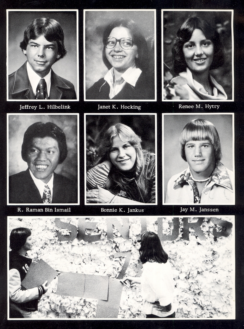 1978 Sheboygan Falls High School, Page 123: Jeffrey L. Hilbelink, Janet K. Hocking, Renee M. Hytry, R. Raman Bin Ismail, Bonnie K. Jankus, Jay M. Janssen.
