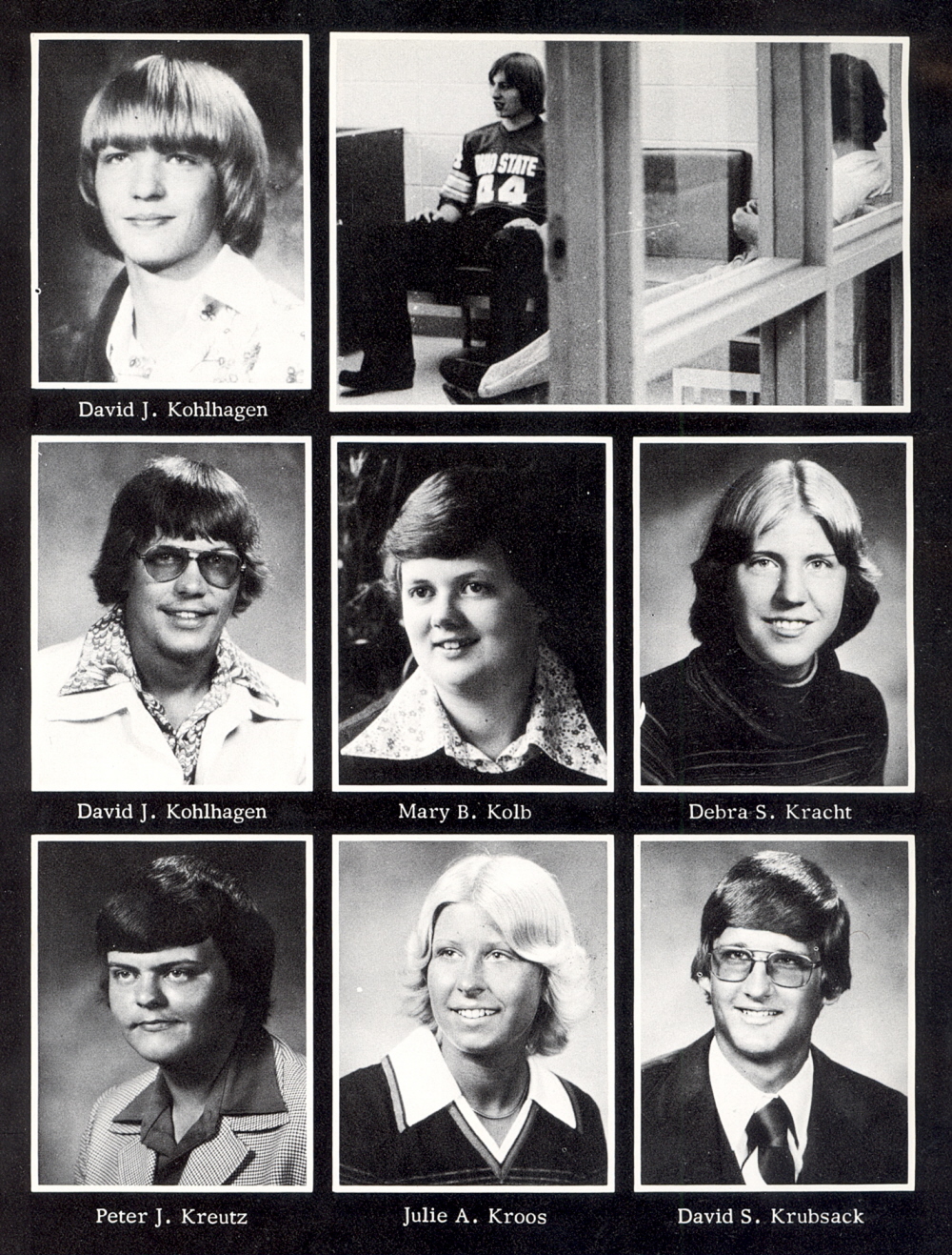 1978 Sheboygan Falls High School, Page 125: David J. Kohlhagen, David J. Kohlhagen, Mary B. Kolb, Debra S. Kracht, Peter J. Kreutz, Julie A. Kroos, David S. Krubsack.