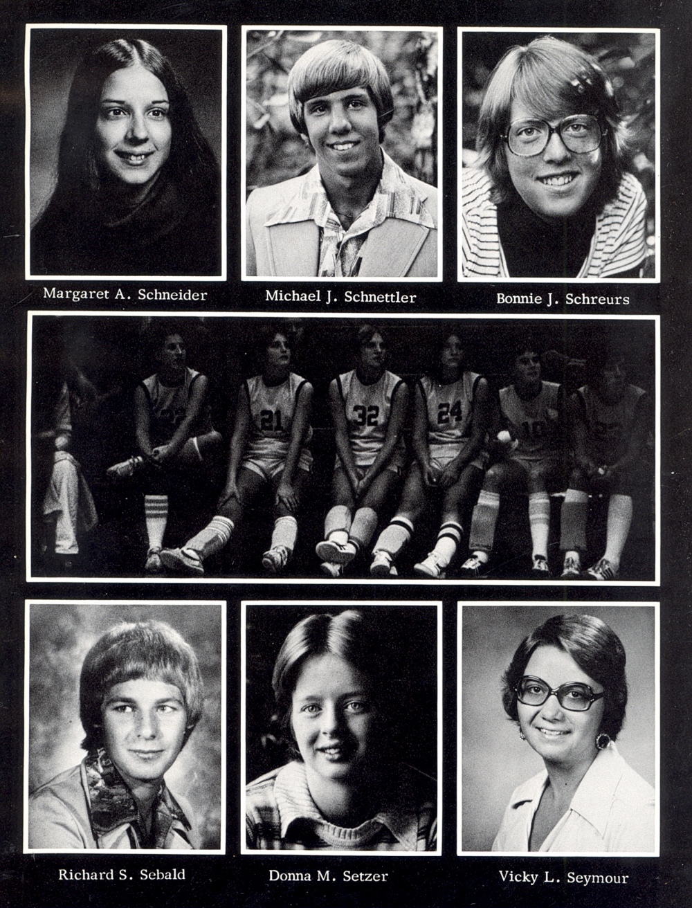 1978 Sheboygan Falls High School, Page 132: Margaret A. Schneider, Michael J. Schnettler, Bonnie J. Schreurs, Richard S. Sebald, Donna M. Setzer, Vicky L. Seymour.