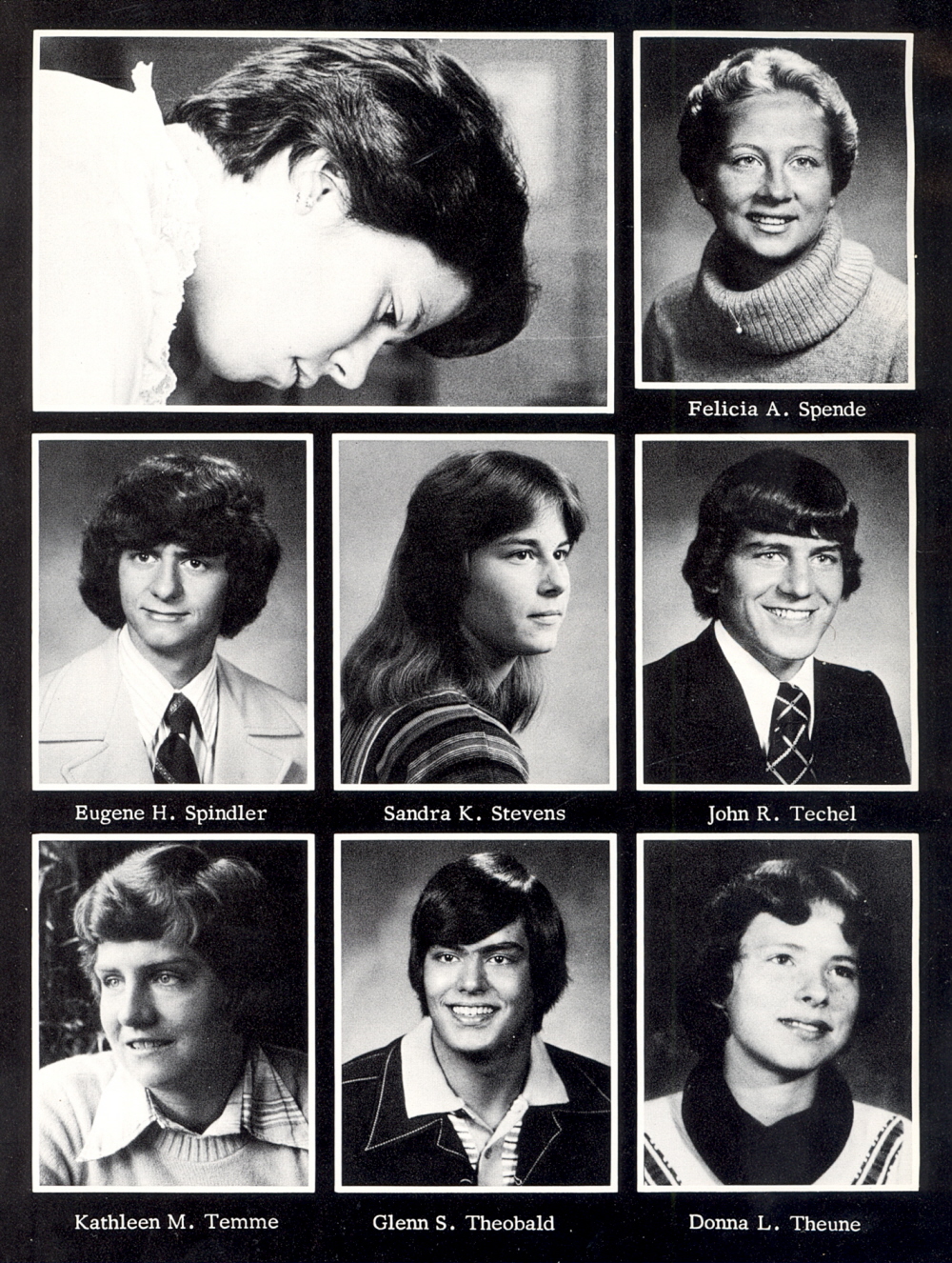 1978 Sheboygan Falls High School, Page 133: Felicia A. Spende, Eugene H. Spindler, Sandra K. Stevens, John R. Techel, Kathleen M. Temme, Glenn S. Theobald, Donna L. Theune.
