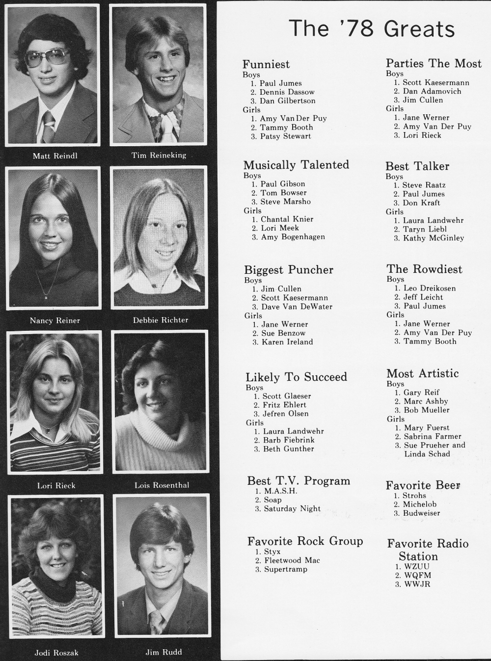 1978 Sheboygan North High School, Page 109: Matt Reindl, Tim Reineking, Nancy Reiner, Debbie Richter, Lori Rieck, Lois Rosenthal, Jodi Roszak, Jim Rudd.