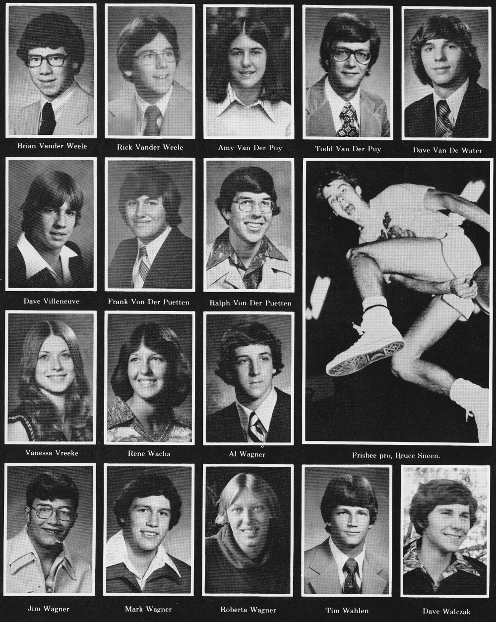 High School, Page 116: Brian Vander Weele, Rick Vander Weele, Amy Van Der Puy, Todd Van Der Puy, Dave Van De Water, Dave Villeneuve, Frank Von Der Puetten, Ralph Von Der Puetten, Vanessa Vreeke, Rene Wacha, Al Wagner, Jim Wagner, Mark Wagner, Roberta Wagner, Tim Wahlen, Dave Walczak.
