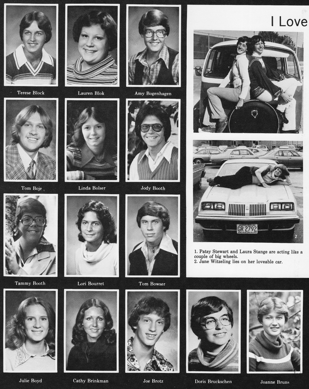 1978 Sheboygan North High School, Page 88: Terese Block, Lauren Blok, Amy Bogenhagen, Tom Boje, Linda Bolser, Jody Booth, Tammy Booth, Lori Bourret, Tom Bowser, Julie Boyd, Cathy Brinkman, Jow Brotz, Doris Bruckschen, Joanne Bruns.