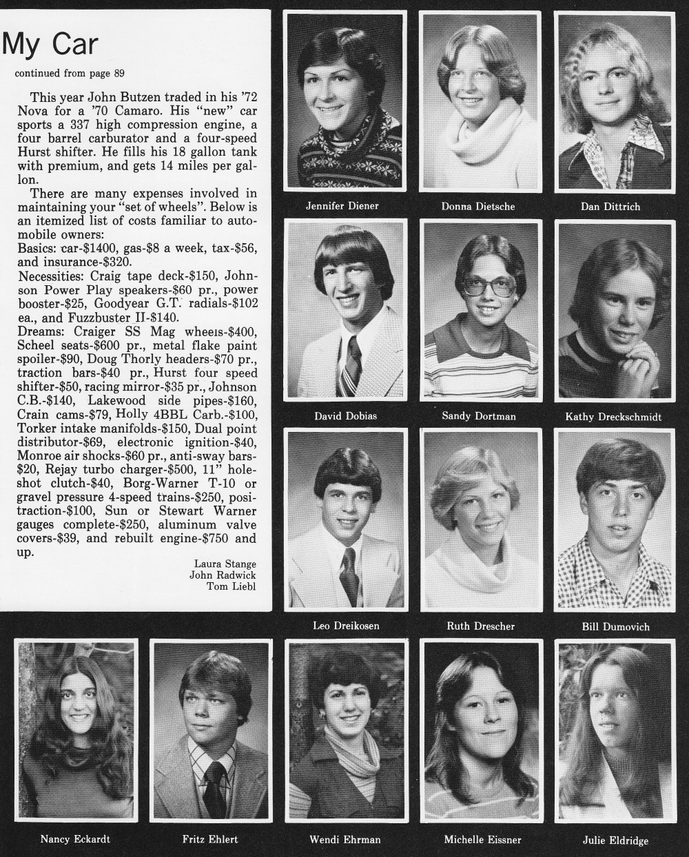 High School, Page 91: Jennifer Diener, Donna Dietsche, Dan Dittrich, David Dobias, Sandy Dortman, Kathy Dreckschmidt, Leo Dreikosen, Ruth Drescher, Bill Dumovich, Nancy Eckardt, Fritz Ehlert, Wendi Ehrman, Michelle Eissner, Julie Eldridge.
