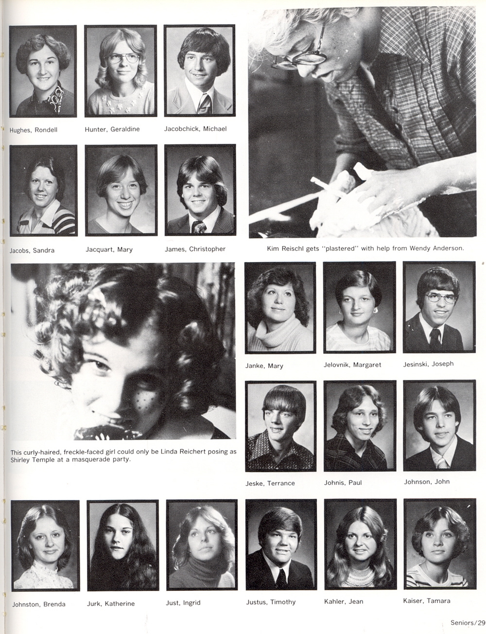 1978 Sheboygan South High School, Page 29: Rondell Hughes, Geraldine Hunter, Michael Jacobchick, Sandra Jacobs, Mary Jacquart, Christopher James, Mary Janke, Margaret Jelovnik, Joseph Jesinski, Terrance Jeske, Paul Johnis, John Johnson, Brenda Johnston, Katherine Jurk, Ingrid Just, Timothy Justus, Jean Kahler, Tamara Kaiser.