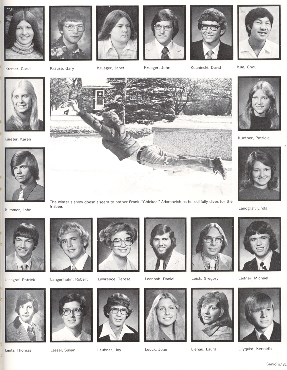 1978 Sheboygan South High School, Page 31: Carol Kramer, Gary Krause, Janet Krueger, John Krueger, David Kuchinski, Chou Kue, Karen Kuester, Patricia Kuether, John Kummer, Linda Landgraf, Patrick Landgraf, Robert Langenhahn, Terese Lawrence, Daniel Leannah, Gregory Leick, Michael Leitner, Thomas Lentz, Susan Lessel, Jay Leubner, Joan Leuck, Laura Lienau, Kenneth Lilyquist.