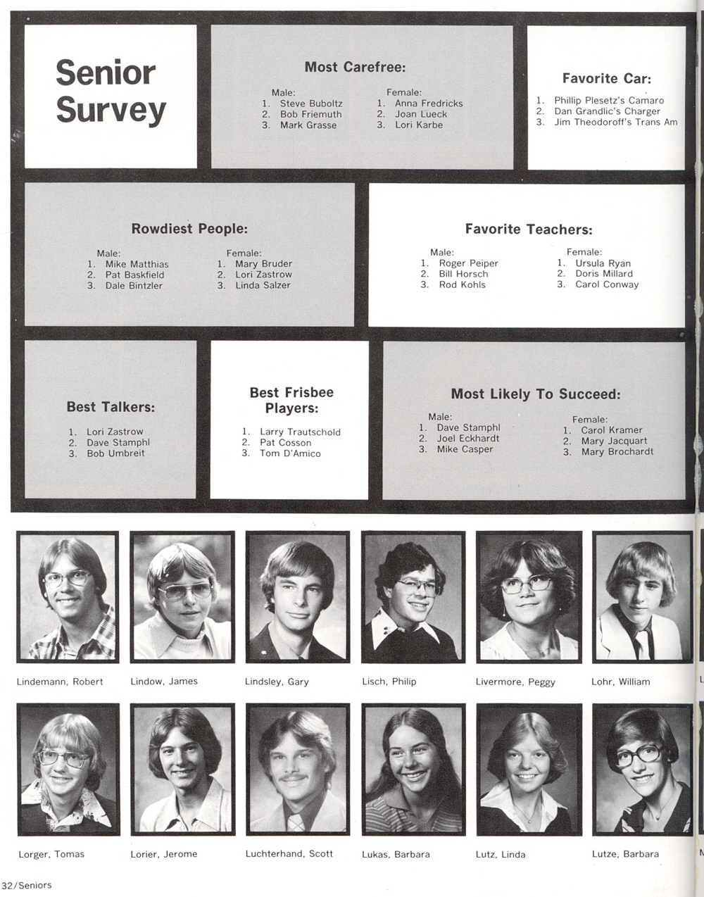 1978 Sheboygan South High School, Page 32: Robert Lindermann, James Lindow, Gary Lindsley, Philip Lisch, Peggy Livermore, William Lohr, Tomas Lorger, Jerome Lorier, Scott Luchterhand, Barbara Lukas, Linda Lutz, Barbara Lutze.