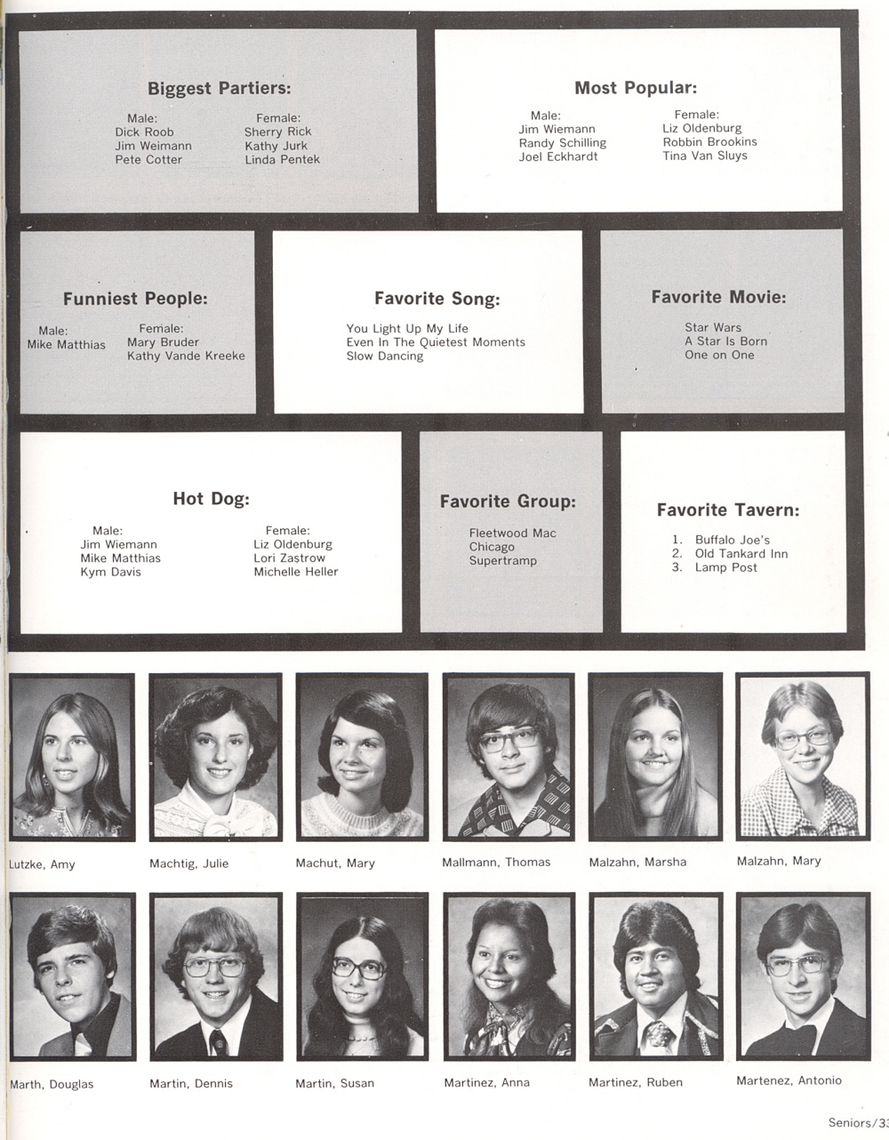 1978 Sheboygan South High School, Page 33: Amy Lutzke, Julie Machtig, Mary Machut, Thomas Mallmann, Marsha Malzahn, Mary Malzahn, Douglas Marth, Dennis Martin, Susan Martin, Anna Martinez, Ruben Martinez, Antonio Martinez.