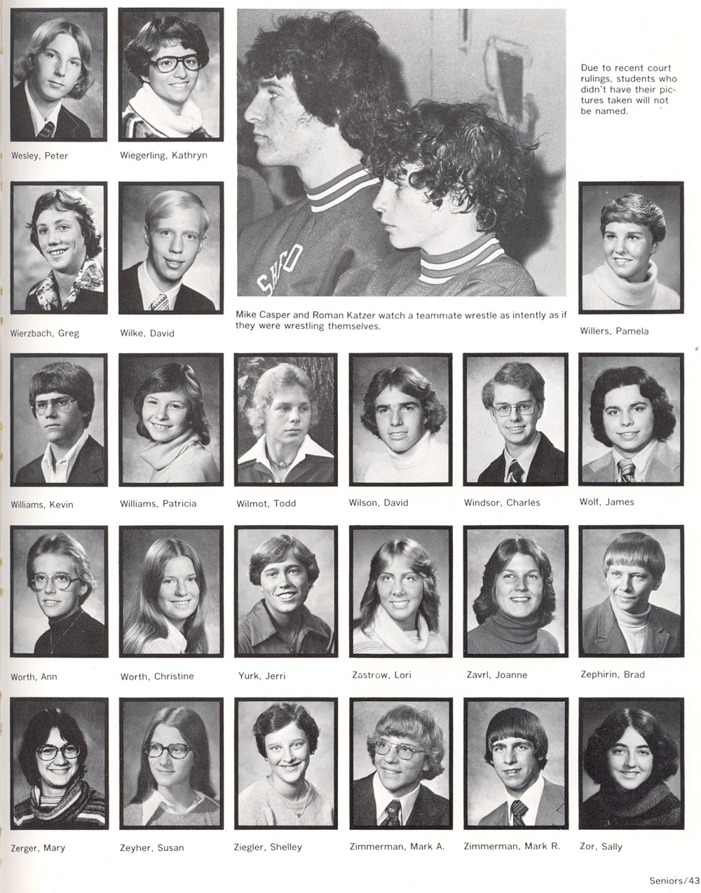1978 Sheboygan South High School, Page 43: Peter Wesley, Kathryn Wiegerling, Greg Wierzbach, David Wilke, Pamela Willers, Kevin Williams, Patricia Williams, Todd Wilmot, David Wilson, Charles Windsor, James Wolf, Ann Worth, Christine Worth, Jerri Yurk, Lori Zastrow, Joanne Zavrl, Brad Zephirin, Mary Zerger, Susan Zeyher, Shelley Ziegler, Mark A. Zimmerman, Mark R. Zimmerman, Sally Zor.