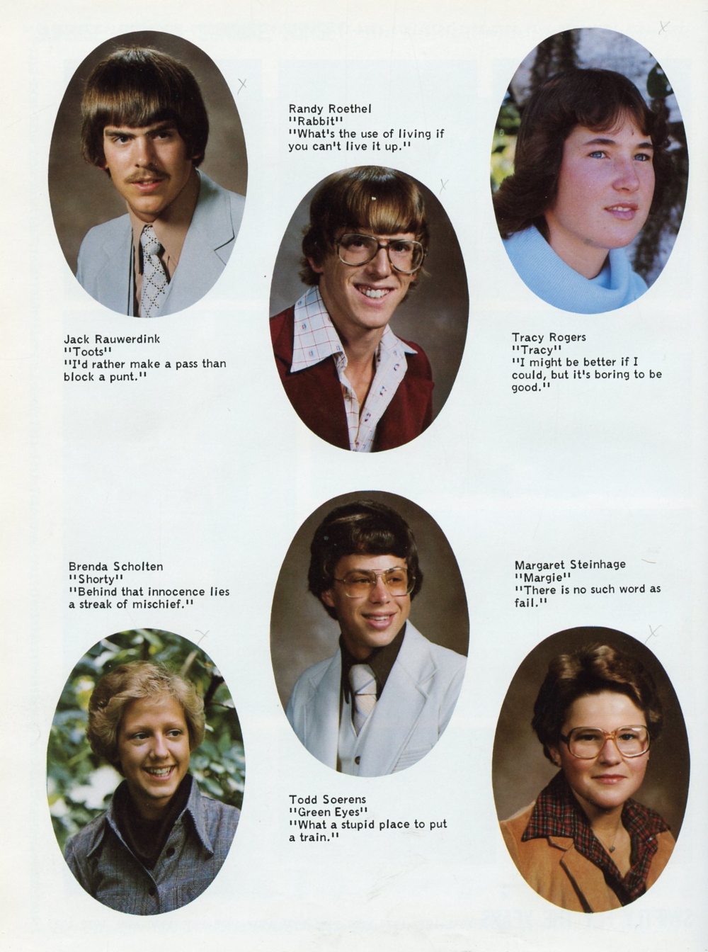 1979 Oostburg High School Yearbook Page 24: Jack Rauwerdink, Randy Roethel, Tracy Rogers, Brenda Scholten, Todd Soerens, Margaret Steinhage.