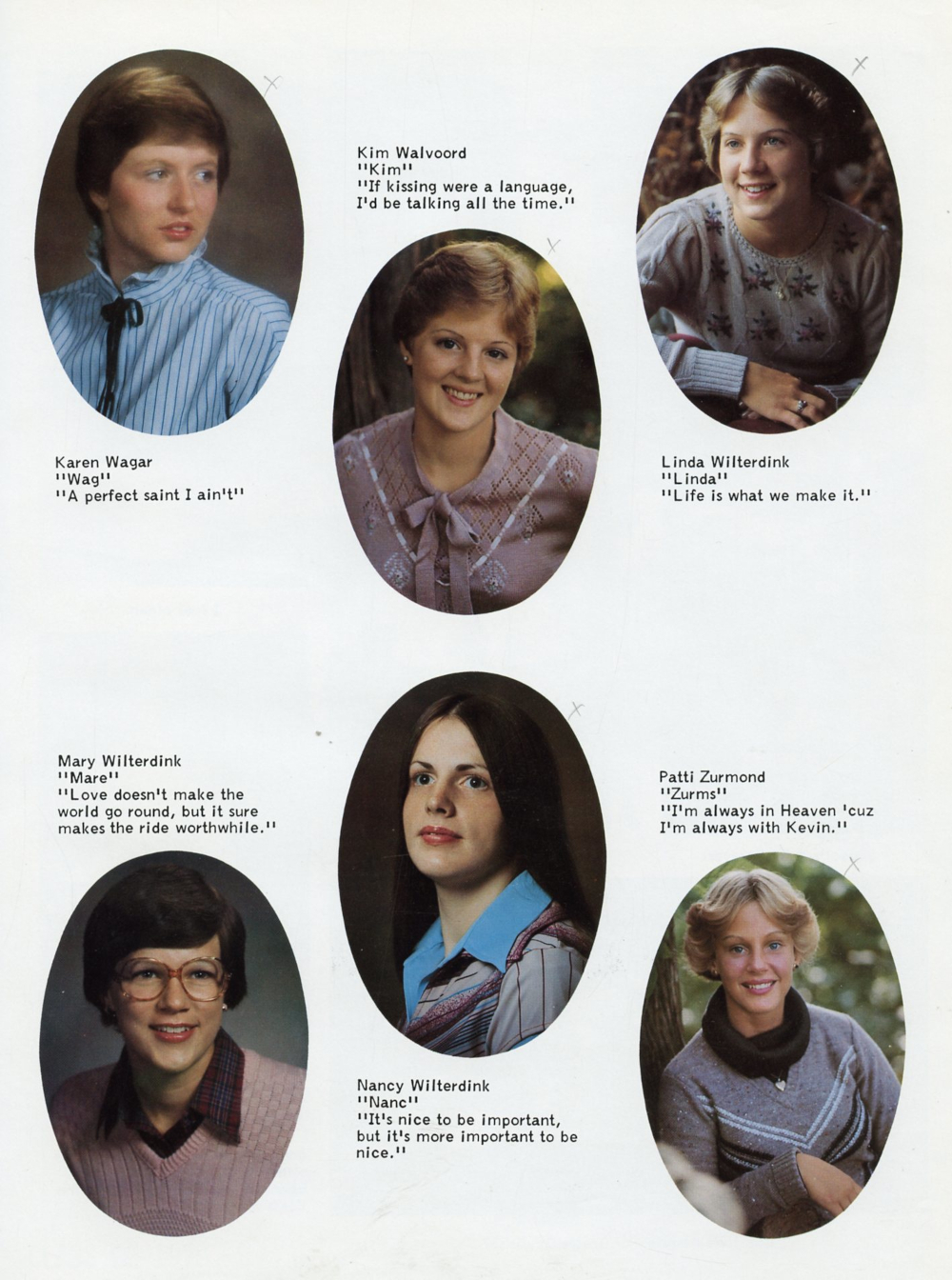 1979 Oostburg High School Yearbook Page 29: Karen Wagar, Kim Walvoord, Linda Wilterdink, Mary Wilterdink, Nancy Wilterdink, Patti Zurmond.