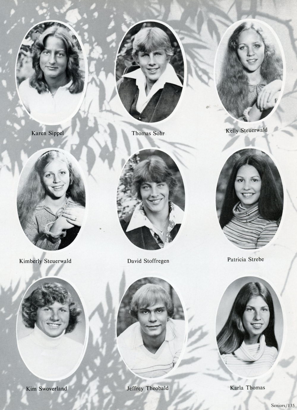1979 Sheboygan Falls High School Yearbook Page 135: Karen Sippel, Thomas Sohr, Kelly Steuerwald, Kimberly Steuerwald, David Stoffregen, Patricia Strebe, Kim Swoverland, Jeffrey Theobald, Karla Thomas.