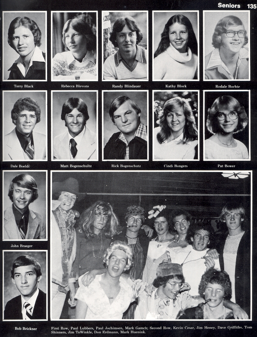 1979 Sheboygan North High School, Page 135: Terry Black, Rebecca Blevons, Randy Blindauer, Kathy Block, Rodale Bochte, Dale Boeldt, Matt Bogenschultz, Rick Bogenschutz, Cindi Bongers, Pat Bower, John Braeger, Bob Brickner.