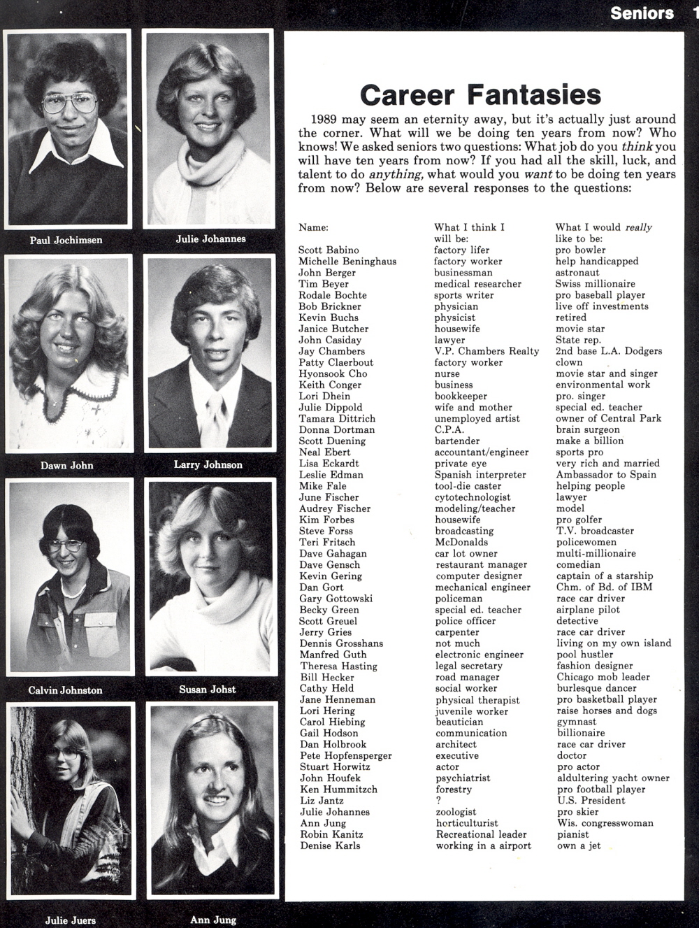 1979 Sheboygan North High School, Page 145: Paul Jochimsen, Julie Johannes, Dawn John, Larry Johnson, Calvin Johnston, Susan Johst, Julie Juers, Ann Jung.