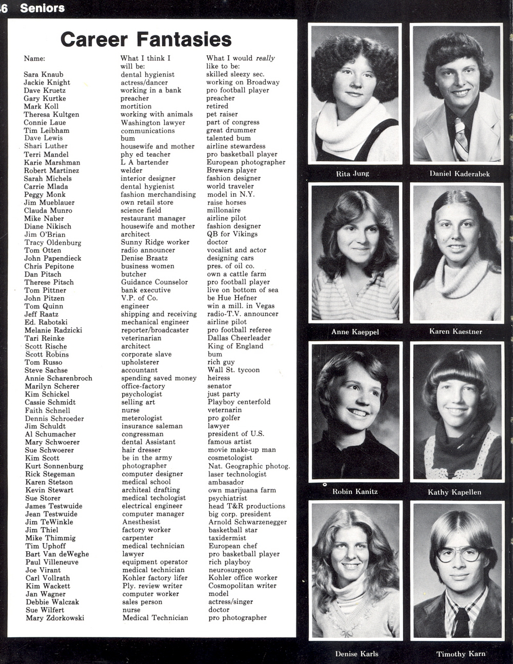 1979 Sheboygan North High School, Page 146: Rita Jung, Daniel Kaderabek, Anne Kaeppel, Karen Kaestner, Robin Kanitz, Kathy Kapellen, Denise Karls, Timothy Karn.