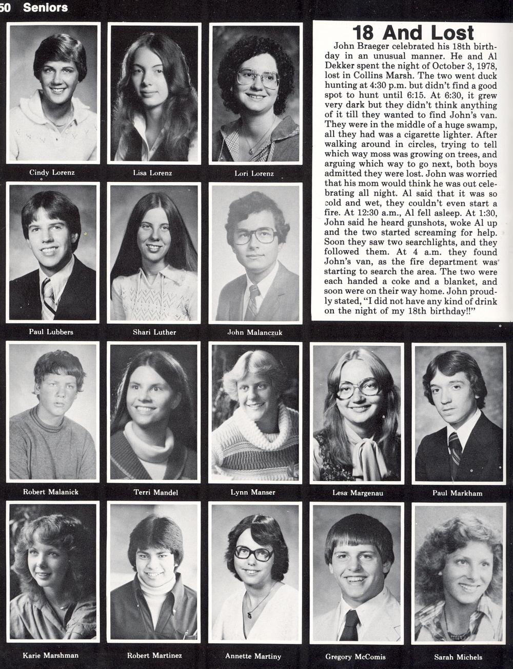 High School, Page 150: Cindy Lorenz, Lisa Lorenz, Lori Lorenz, Paul Lubbers, Shari Luther, John Malanczuk, Robert Malanick, Terri Mandel, Lynn Manser, Lesa Margenau, Paul Markham, Karie Marshman, Robert Martinez, Annette Martiny, Gregory McComis, Sarah Michels.